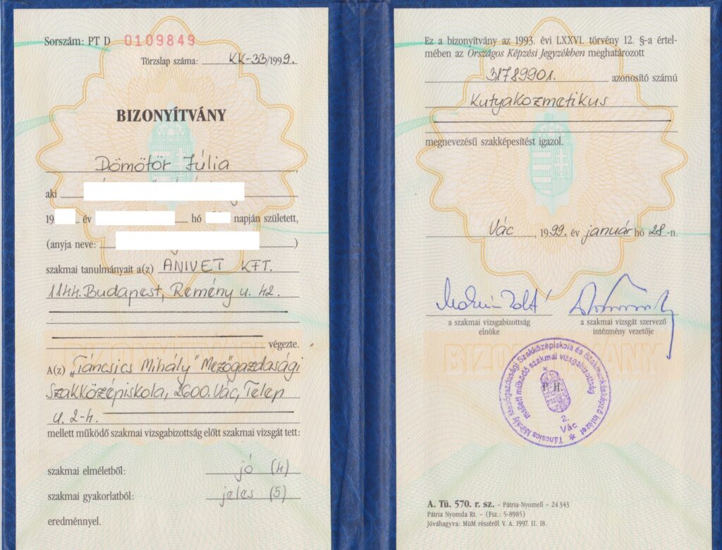 1998–1999 Kutyakozmetikus – OKJ-s képzés