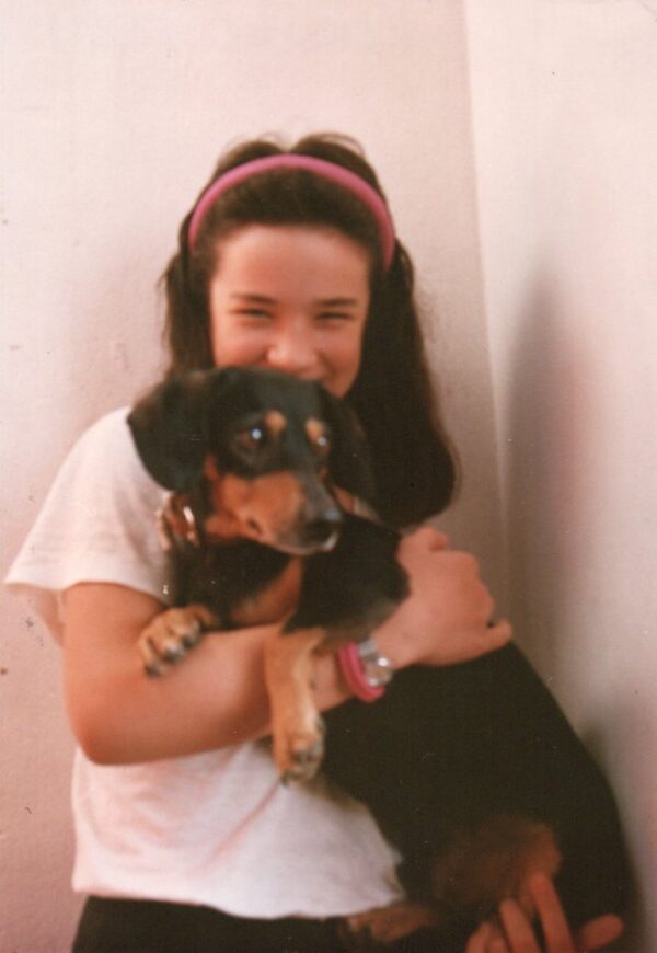 Utcáról befogadott, tacskó kutyámmal, Kaszinóval, 1991-ben, 12 évesen.