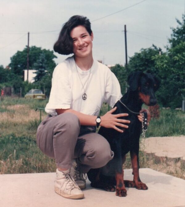 14 évesen, az akkor 6 hónapos dobermanommal, Kimmel.